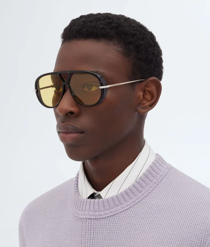 Descripción larga compactada:Gafas de sol tipo aviador en acetato reciclado. Fabricadas en Japón.