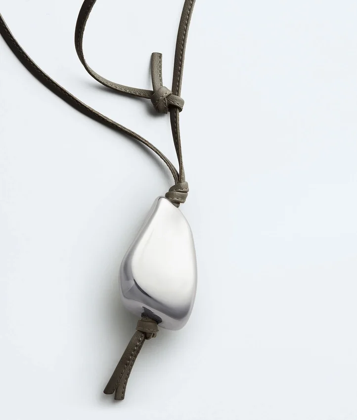 Descripción larga compactada:Collar fabricado en piel napa con un colgante escultural de plata de ley.