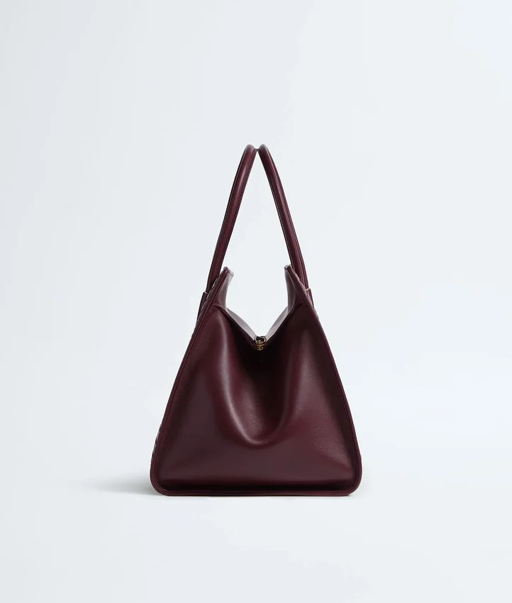 Descripción larga compactada:Bolso tote con cremallera y silueta estilizada, confeccionado con la técnica Intrecciato en suave piel napa. Con cierres de botón a presión en los laterales interiores para organizar la bolsa protectora.