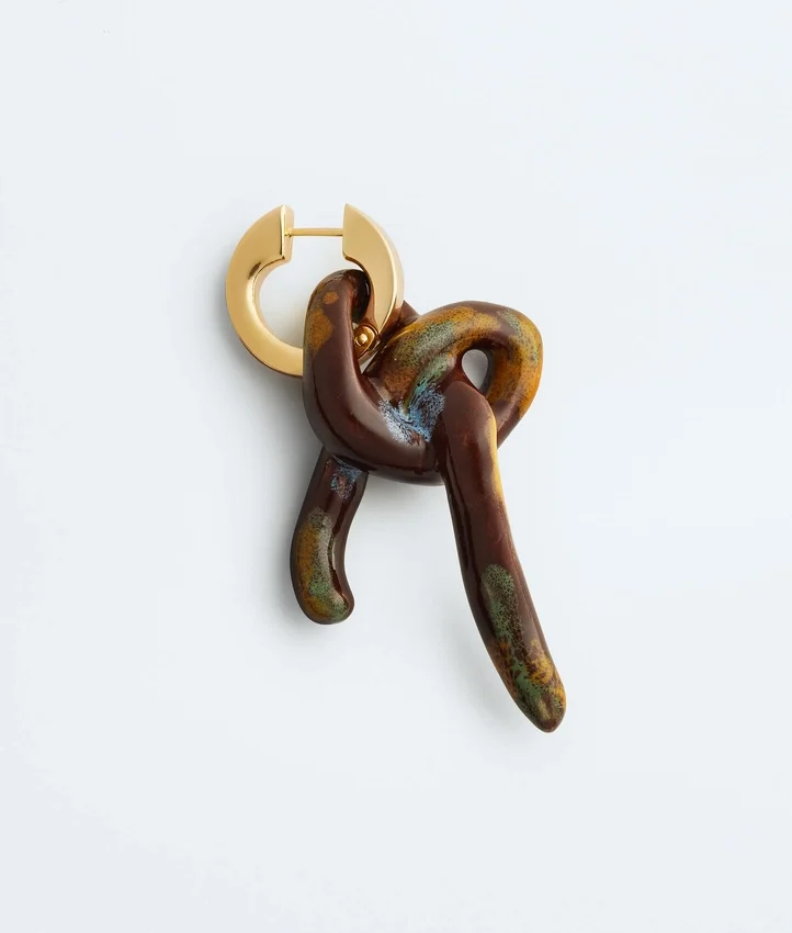 • Pendiente individual de cerámica y plata de ley con acabado en oro de 18 quilates