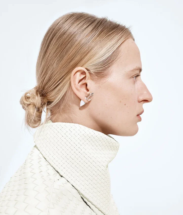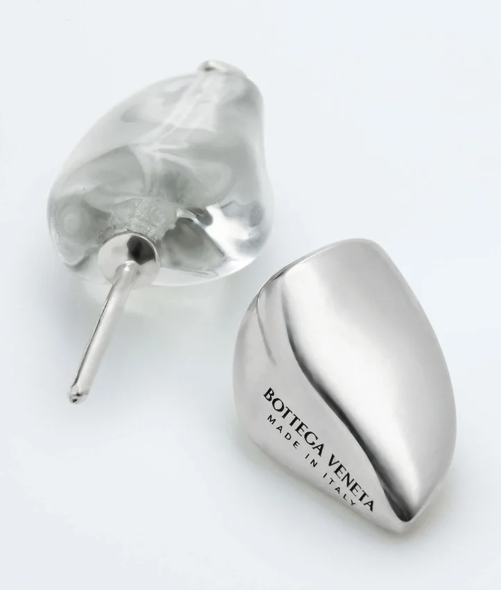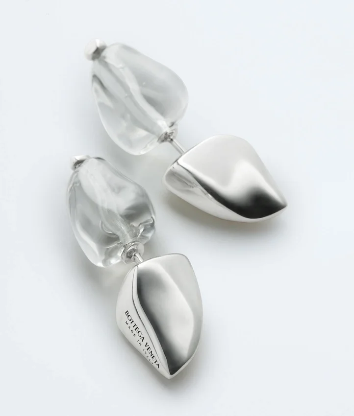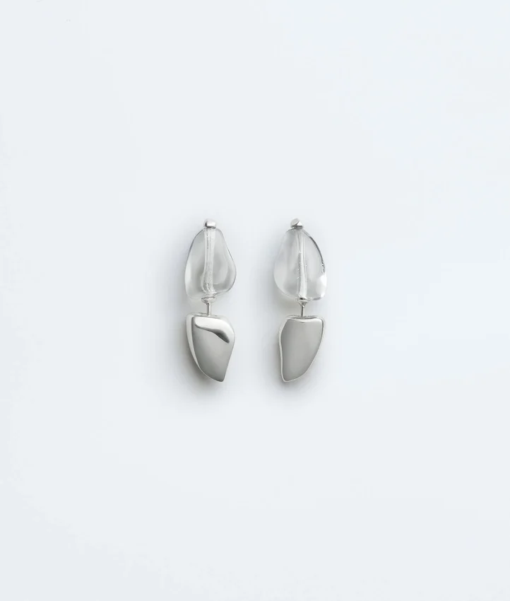Descripción larga compacta:Pendientes con formas esculturales fabricados en plata de ley y vidrio artesanal.