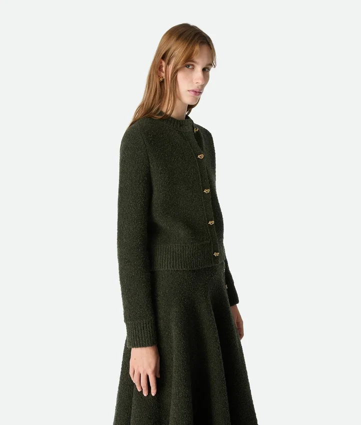 Descripción larga compactada:Cárdigan de lana bouclé con detalles de botones metálicos con Knot.