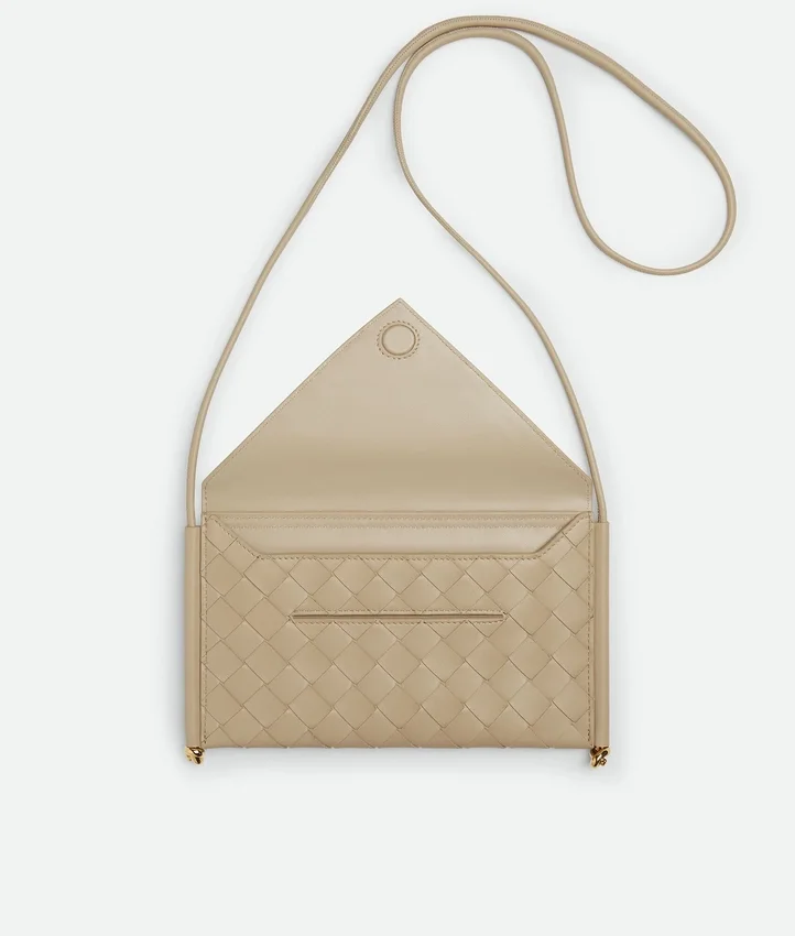 Descripción larga compactada:Funda para móvil en piel de becerro Intrecciato con detalles de nudo característicos.
