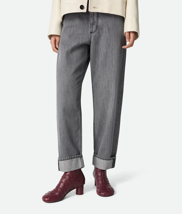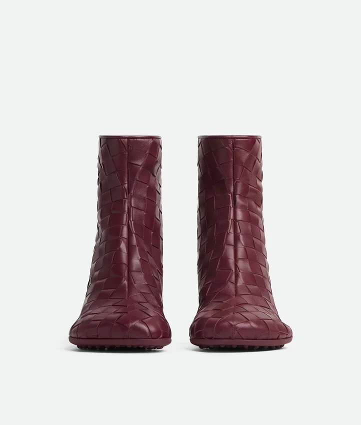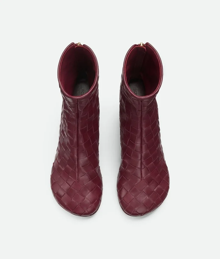 Descripción larga compactada:Botas de tacón bajo confeccionadas en piel de cordero con el diseño Intrecciato.