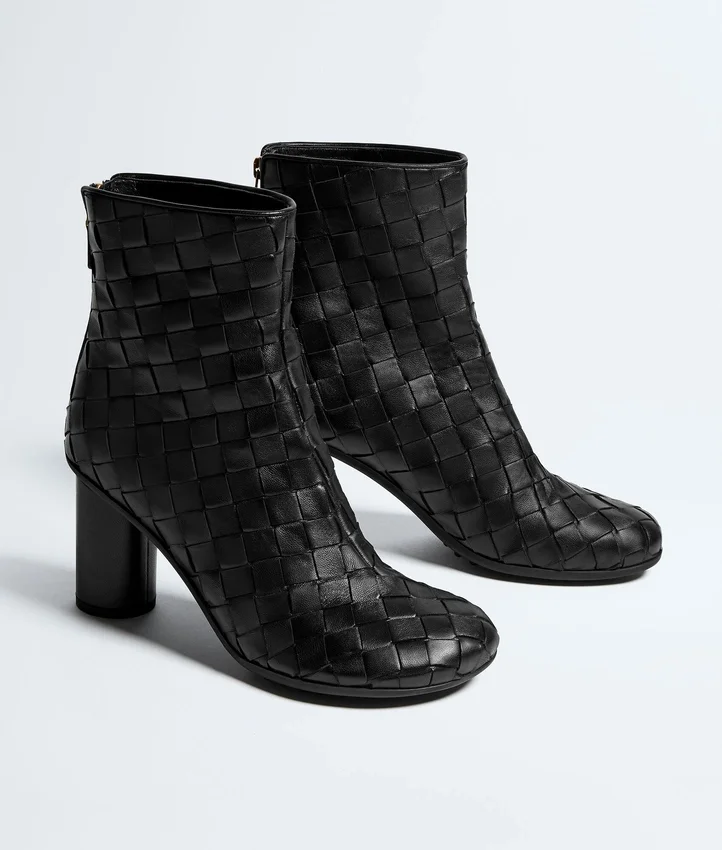 Descripción larga compactada:Botas confeccionadas en piel de cordero con el diseño Intrecciato.