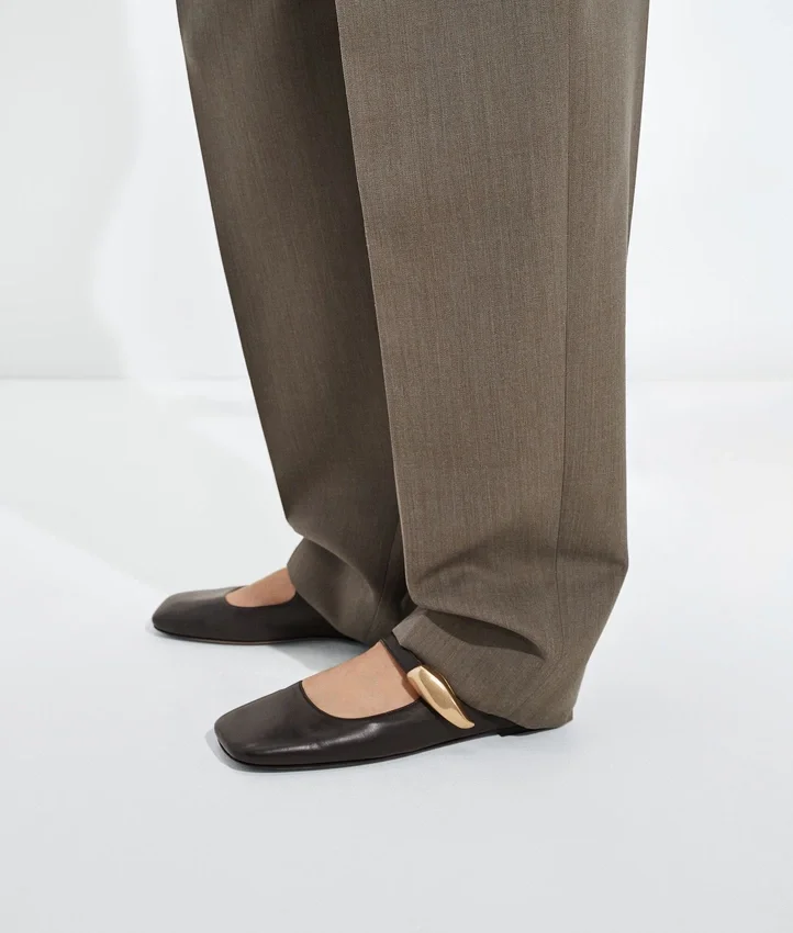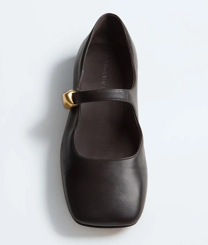 Descripción larga compactada:Bailarina Mary Jane con puntera cuadrada en piel napa, con un detalle escultural inspirado en Prisma en la correa.